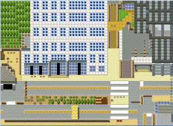 - 각 건물들은 정면 단면도 혹은 상부 단면도로 표현
